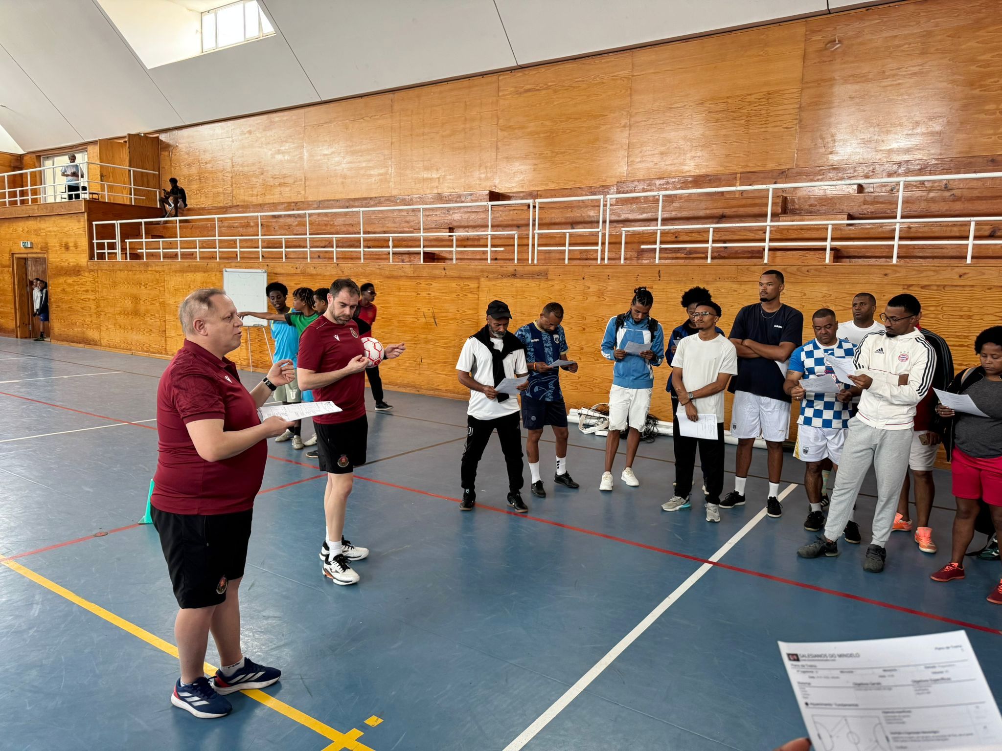 Estruturada em duas vertentes, teórica e prática, a ação teve como principal objetivo a partilha de conhecimentos, a reflexão sobre metodologias de treino e a contribuir para o desenvolvimento sustentado do futsal em Cabo Verde.